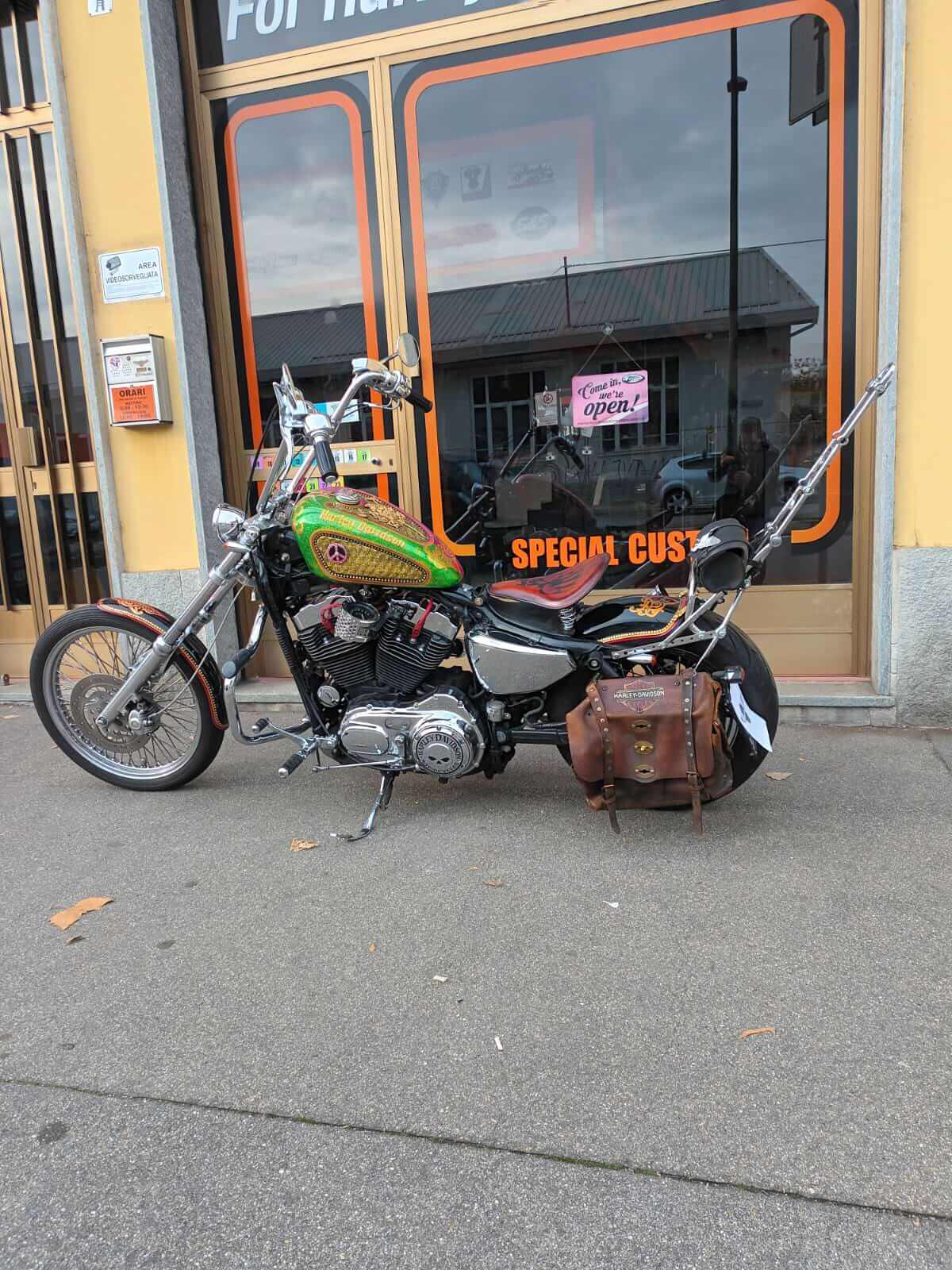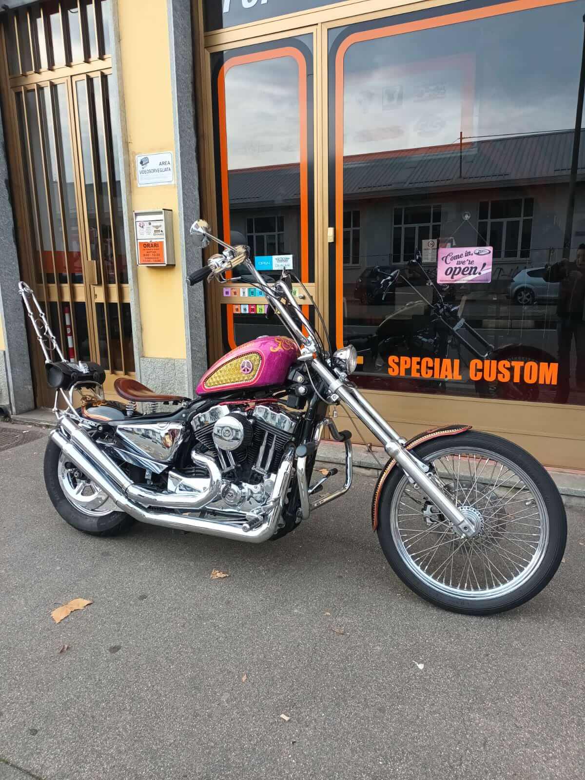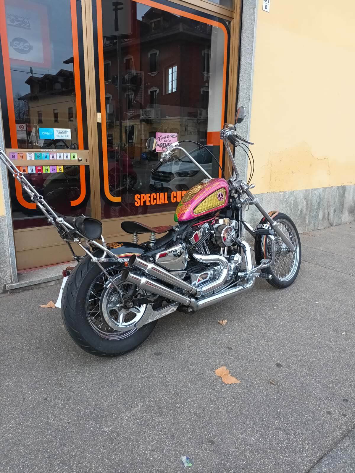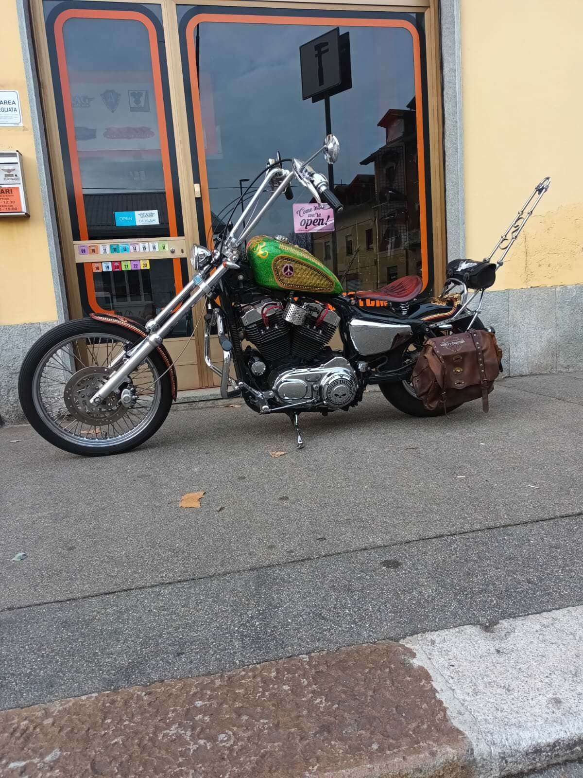 Accessori: scarico artigianale, filtro aria Ness, piastre inclinate, manubrio Ape, comandi manubrio, sella con molle, paramotore, Syssy bar artigianale