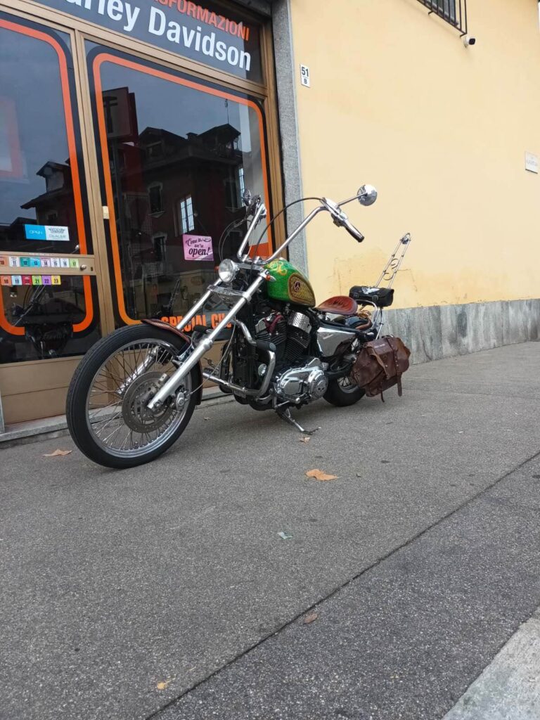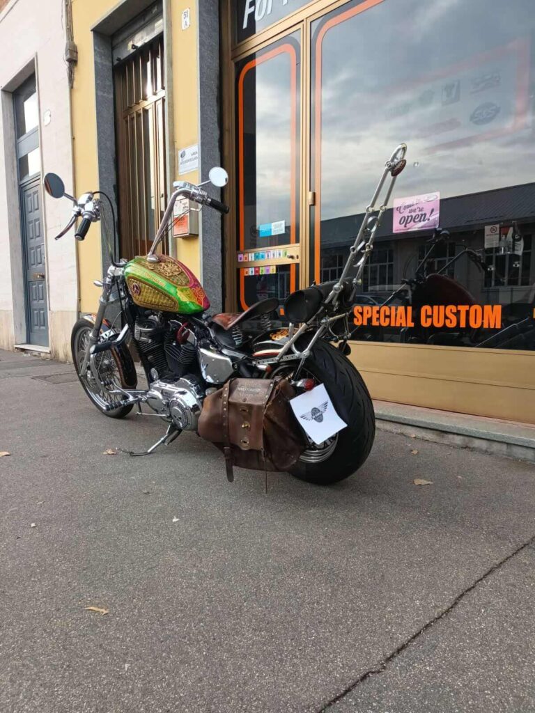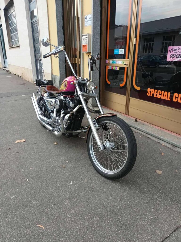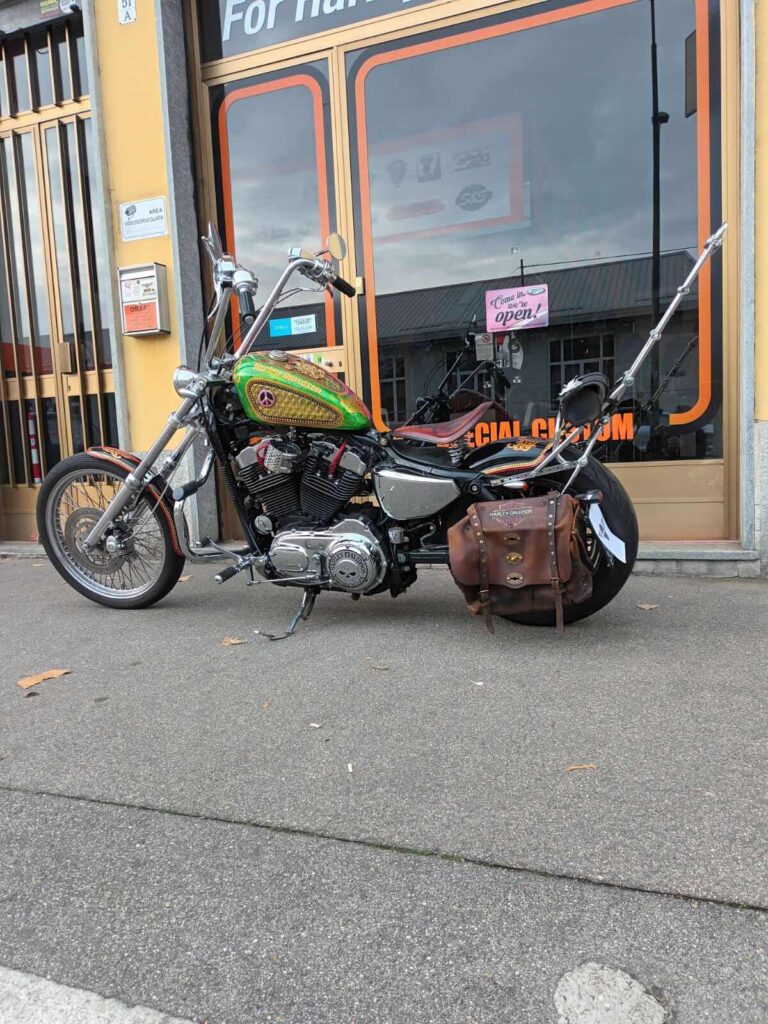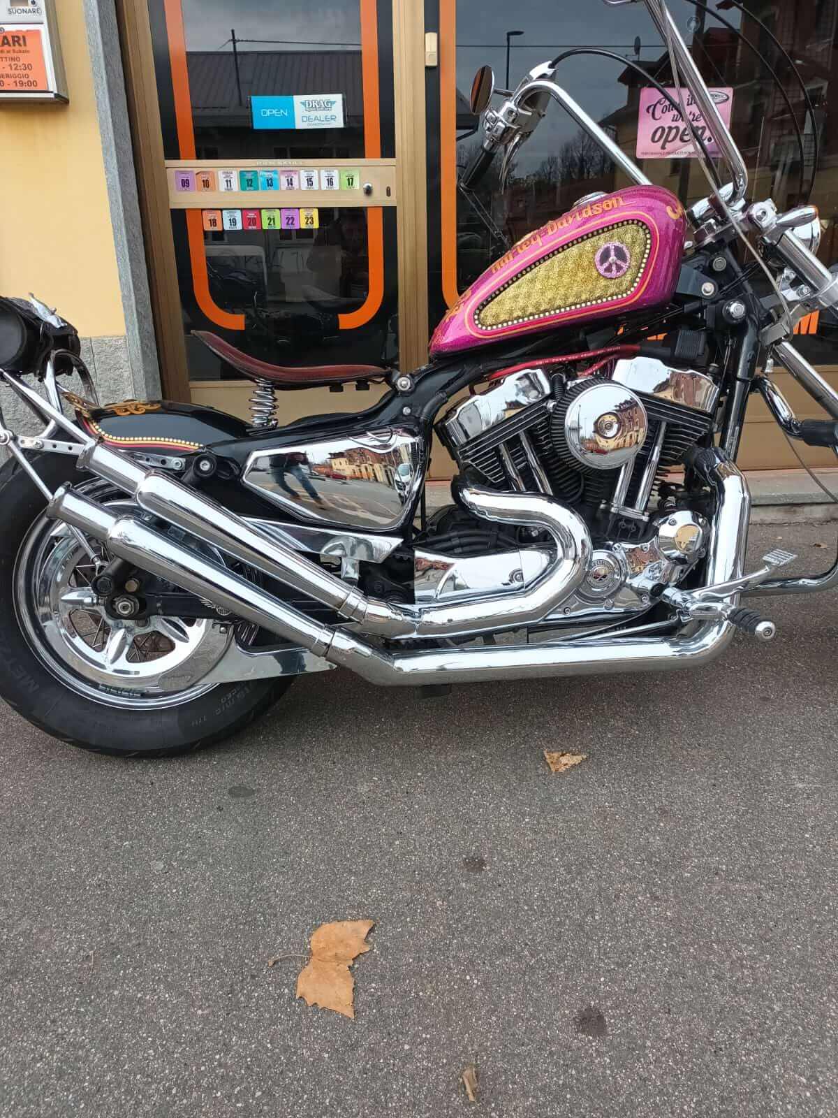 Accessori: scarico artigianale, filtro aria Ness, piastre inclinate, manubrio Ape, comandi manubrio, sella con molle, paramotore, Syssy bar artigianale